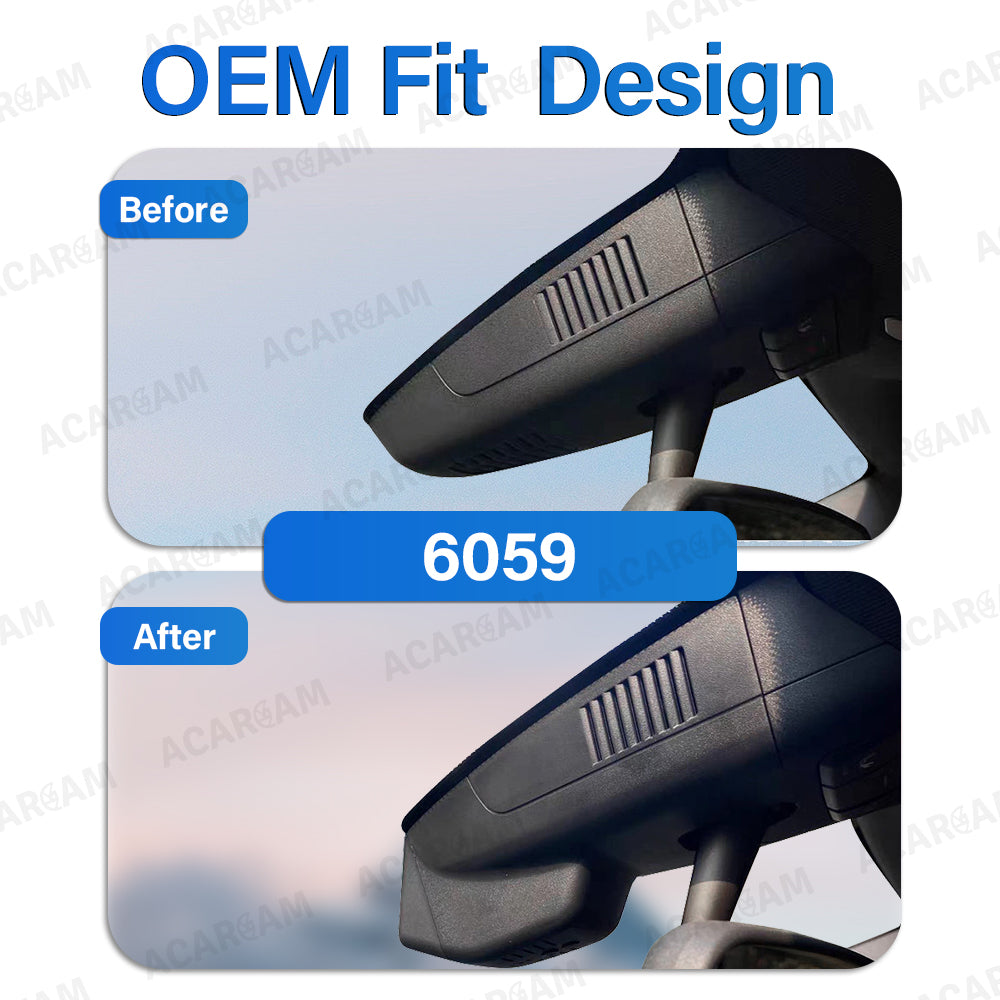 ACARCAM’s dash cam seamlessly integrates with your vehicle’s interior, featuring a 1:1 replica of the original rearview mirror back cover design. This ensures a factory-like appearance while maintaining an unobstructed driver’s view—enhancing safety without compromising aesthetics.